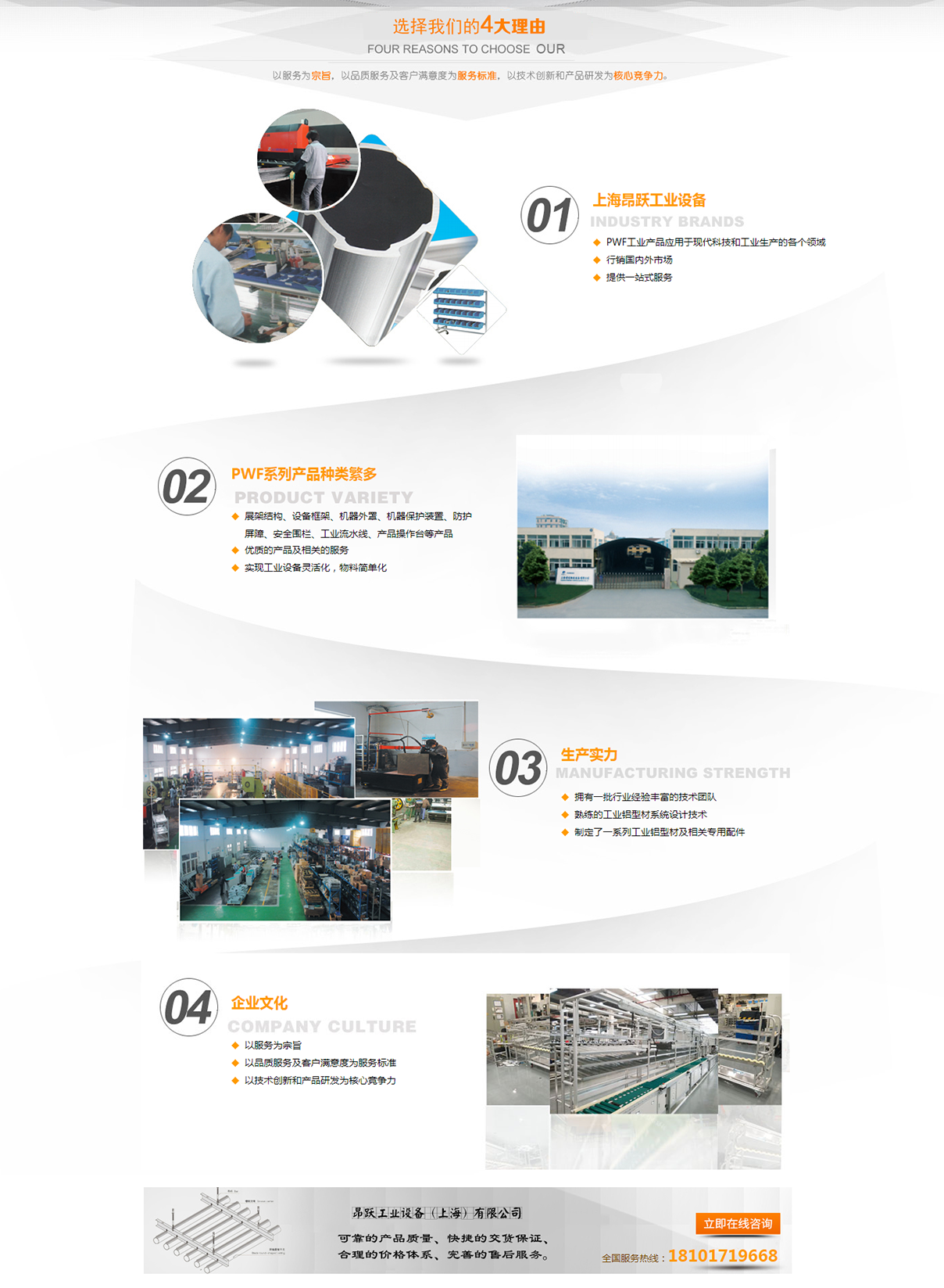 昂躍工業(yè)(上海)有限公司于2012年成立以來(lái),我們秉承以服務(wù)為宗旨,以品質(zhì)、服務(wù)及客戶滿意度為服務(wù)標(biāo)準(zhǔn),以技術(shù)創(chuàng)新和產(chǎn)品研發(fā)為核心競(jìng)爭(zhēng)力。從產(chǎn)品的模具設(shè)計(jì)研發(fā)到擠壓生產(chǎn),從產(chǎn)品精加工到表面處理,從簡(jiǎn)單的鋁型材框架加工到全自動(dòng)流水線裝置系統(tǒng)化制造,我們以曾經(jīng)和正在為各行業(yè)翹楚公司提供產(chǎn)品和服務(wù)為驕傲!